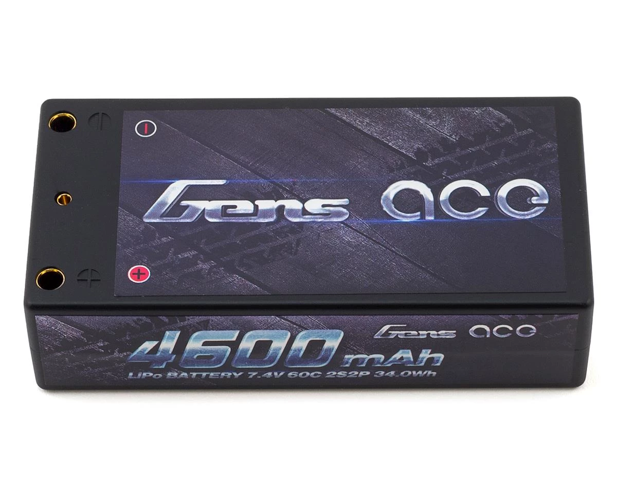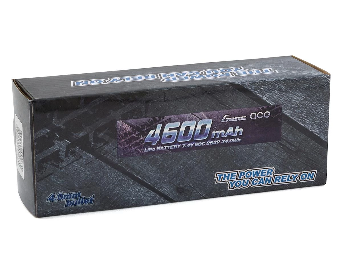 The Gens Ace 2S 60C 4600mAh Hardcase Shorty LiPo Battery Pack features 4mm bullets and includes an adapter cable with a factory installed T-Style connector. This is a high-capacity, high-discharge rate that gives you the power and run-time you expect from Gens Ace LiPo batteries.