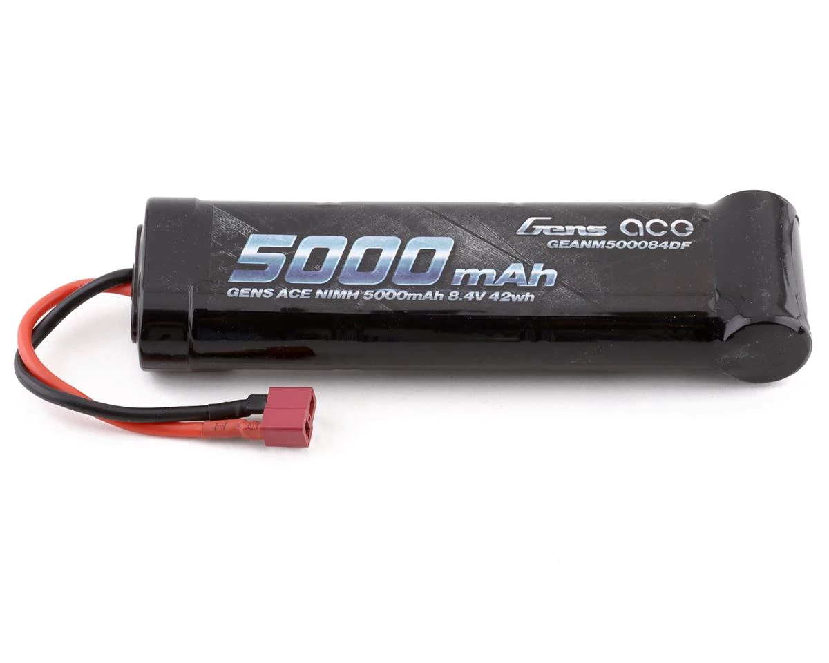 This is a Gens Ace 6-Cell, 7.2V, 5000mAh NiMH Battery Pack with T-Style Deans type Connector. This stick pack is built using quality Sub C size 5000mAh NiMH cells. This pack will fit into any vehicle that uses a standard stick type battery pack. The recommended charge rate for these batteries is 1C for the best battery life and run time, and we do not recommend you charge them at more than 1C (5A Max).Â
