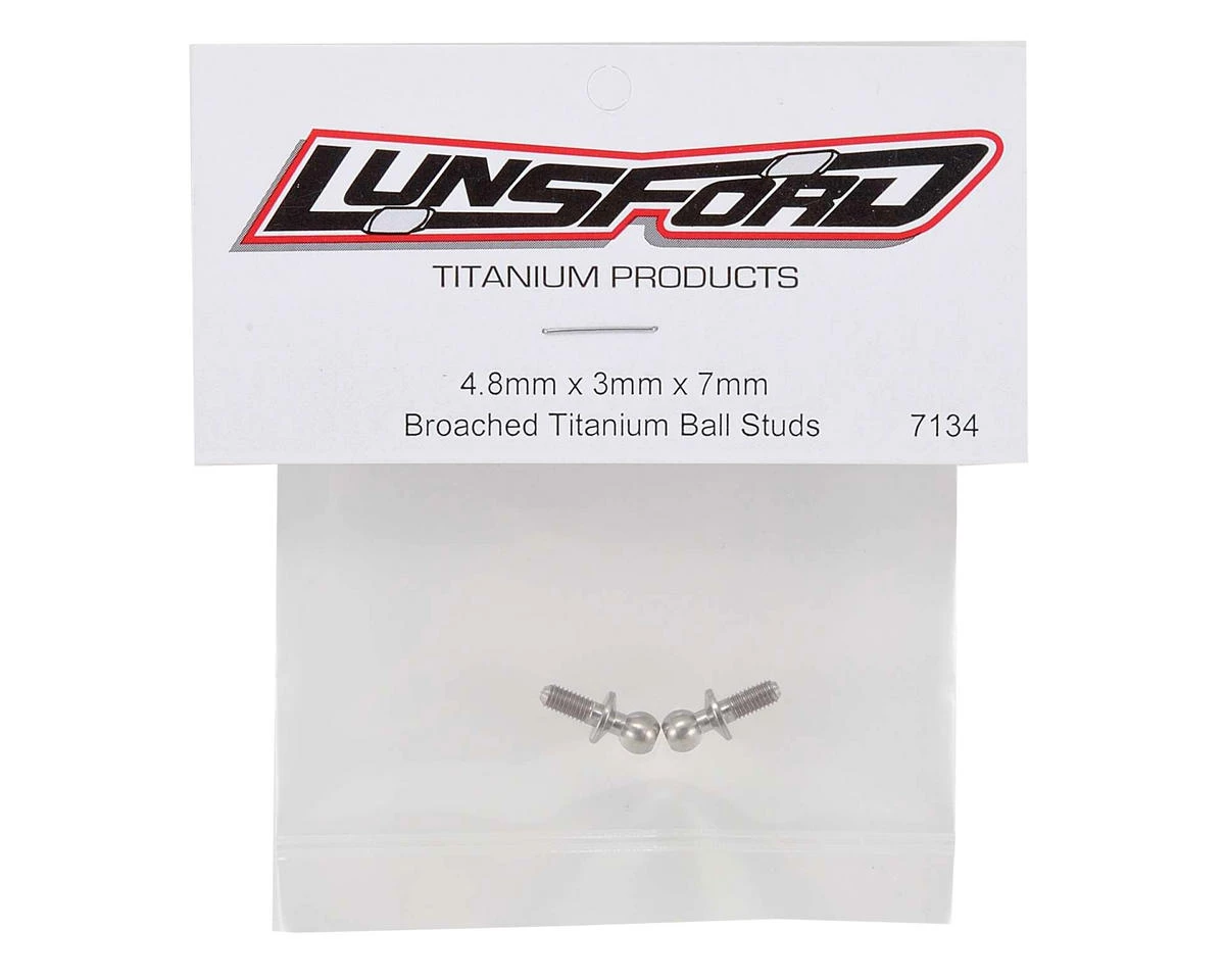 This is a set of two Lunsford 4.8x3x7mm Broached Titanium Ball Studs and are intended for use with most Kyosho 1/10th scale cars and trucks. Get the strongest combination of all time with these titanium ball studs from Lunsford. All Lunsford ball studs are CNC micro finished from 6AL/4V titanium. 4.8mm is the ball diameter, 3mm is the thread size and 7mm is the thread length.