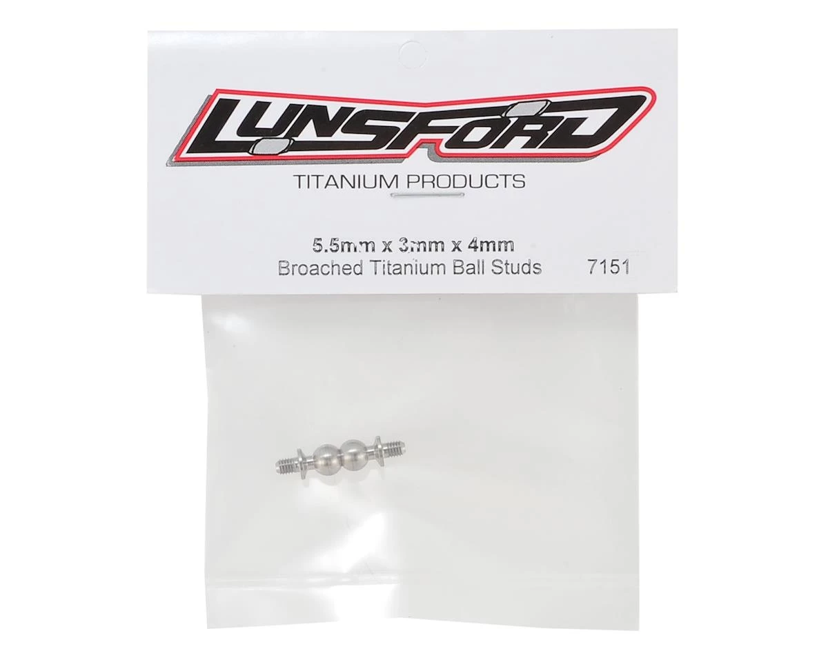 This is a pack of two Lunsford 5.5x3x4mm Titanium Ball Studs. Combine these with Lunsford turnbuckles to get the strongest combination available! All Lunsford ball studs are CNC micro-finished from 6AL/4V titanium. 5.5mm is the ball diameter, 3mm is the shaft diameter, 4mm is the shaft length.