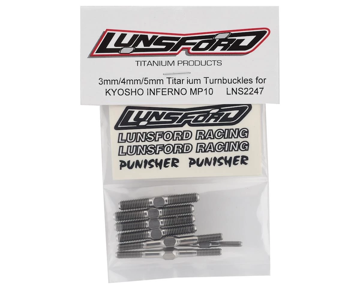 This is an optional Lunsford “Punisher” Kyosho Inferno MP10 Titanium Turnbuckle Kit, including 3mm, 4mm and 5mm turnbuckles.Â