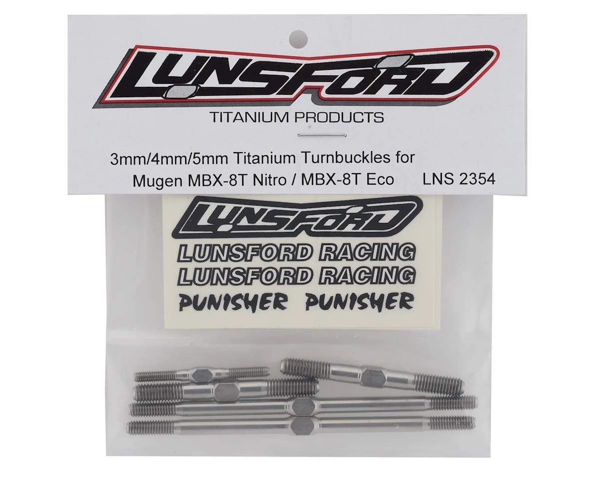 This is an optional Lunsford “Punisher” Mugen MBX-8T/ECO Titanium Turnbuckle Kit. These turnbuckles are CNC machined and thread rolled from domestic US 6AL/4V grade titanium. If you want to put your car on a diet, this is one of the best places to start eliminating weight, without sacrificing strength. Plus they work with the stock ball cups, making this a simple upgrade that will reduce weight and increase strength, delivering a dramatic performance gain.