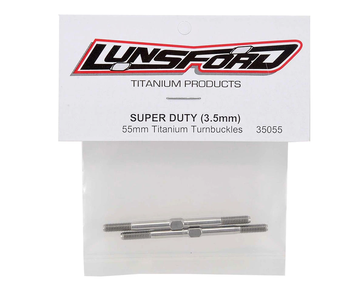 This is a set of two Lunsford “Super Duty” 3.5x55mm Titanium Turnbuckles. Lunsford turnbuckles are CNC machined and thread rolled in house from domestic US 6AL/4V grade titanium. If you want to put your car on a diet, this is one of the best places to start eliminating weight, without sacrificing strength.