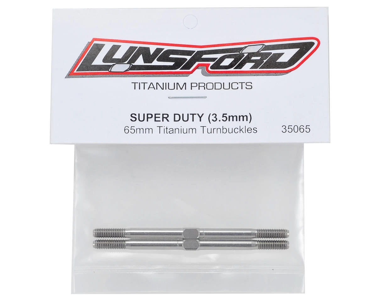 This is a pack of two Lunsford “Super Duty” 3.5x65mm Titanium Turnbuckles. These turnbuckles are CNC machined and thread rolled in house from domestic US 6AL/4V grade titanium. If you want to put your car on a diet, this is one of the best places to start eliminating weight, without sacrificing strength.