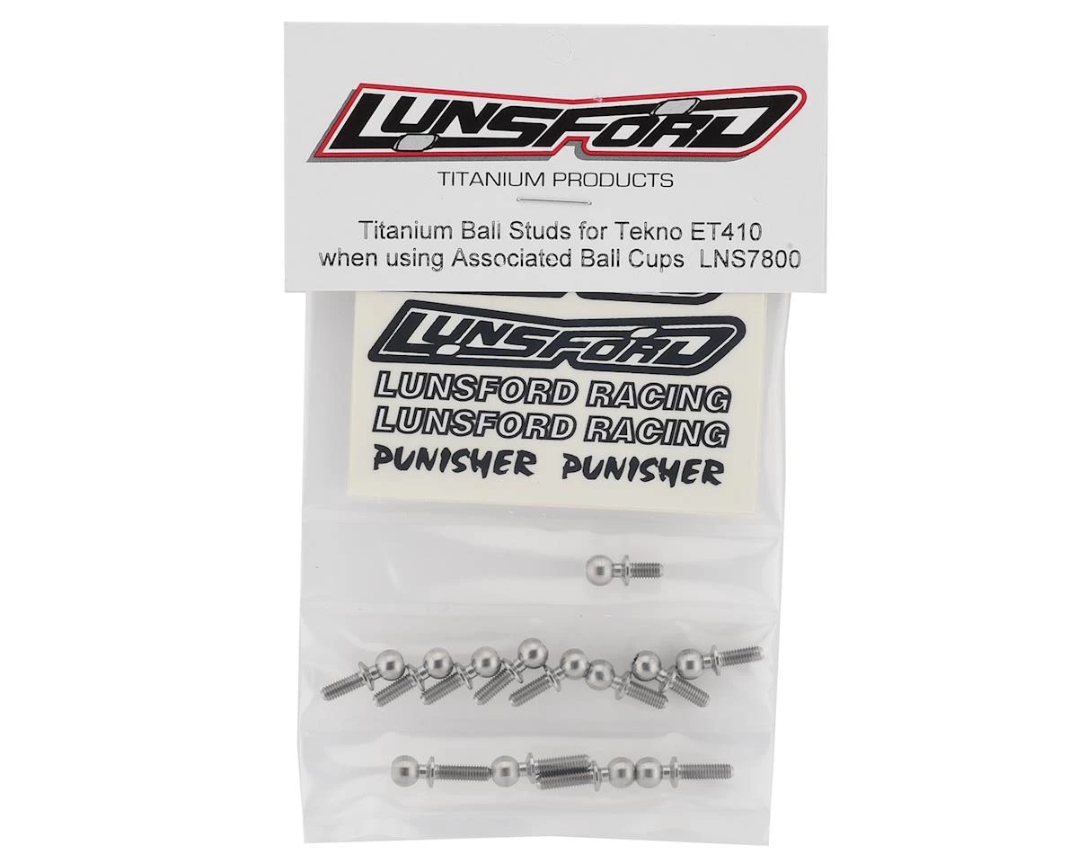 This is an optional Lunsford Tekno ET410 5.5mm Titanium Ball Stud Kit, intended for users who use Team Associated Ball Cups. All Lunsford ball studs are CNC micro finished from 6AL/4V titanium. 4.8mm is the ball diameter, 3mm is the thread size and 5mm is the thread length.