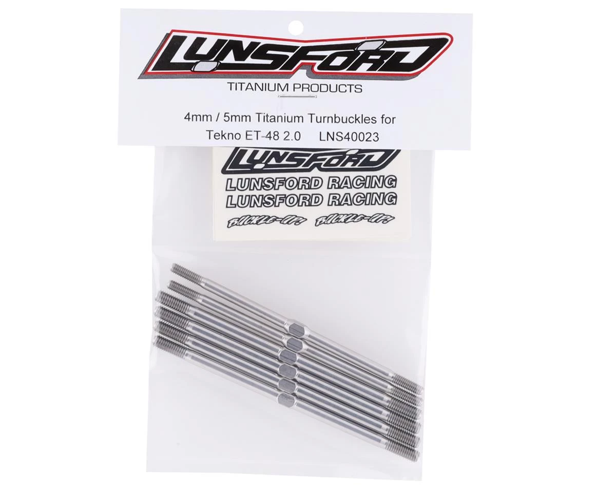 LunsfordĀ Tekno ET48 2.0 “Punisher” 4mm/5mm Titanium Turnbuckle Set. These optional lightweight turnbuckles are lighter than steel while not taking aware from durability. Intended for the Tekno ET410 2.0 these are a great way to lighten your truggy and give a clean finish to the arms and steering turnbuckles.
